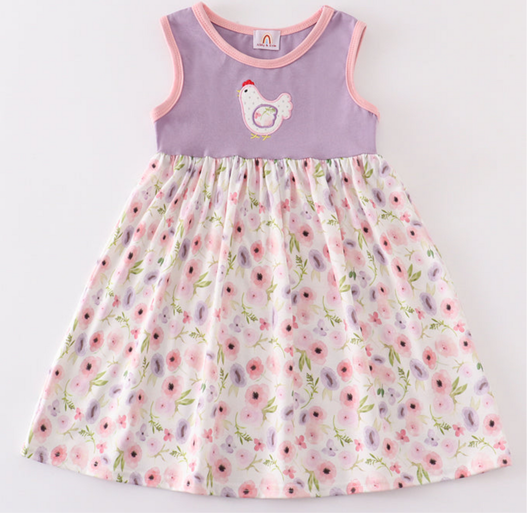 Kids Sleeveless Chicken Floral Dress